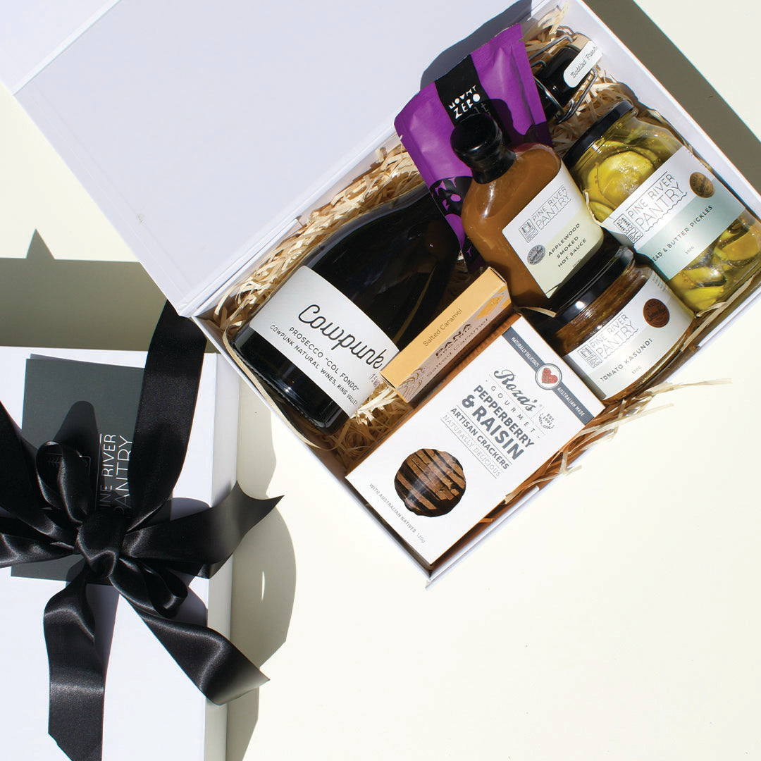 Beautifully presented, our Celebration Hamper contains all local, small batch or Australian products, including 3 full sized Pine River Pantry staples.
